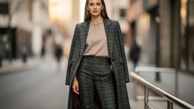 Cette complémentarité entre ancien et nouveau confère à la tenue un caractère unique. Un pantalon tartan n’est jamais anecdotique ; il s’impose visuellement sans jamais paraître daté, ce qui enthousiasme particulièrement celles qui veulent exprimer une personnalité affirmée.